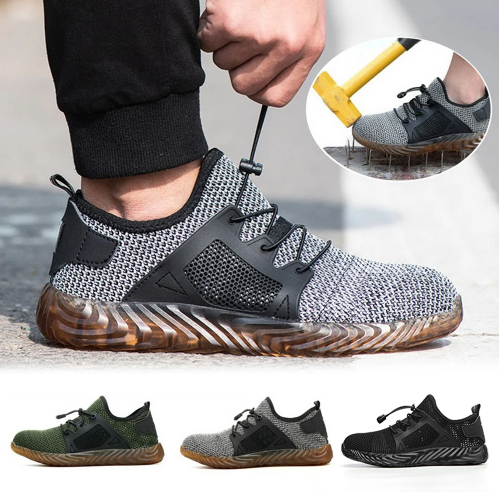 Сетчатая Вулканизированная обувь для мужчин и женщин со стальным носком; ботинки с защитой от проколов; рабочие кроссовки; дышащая Спортивная обувь