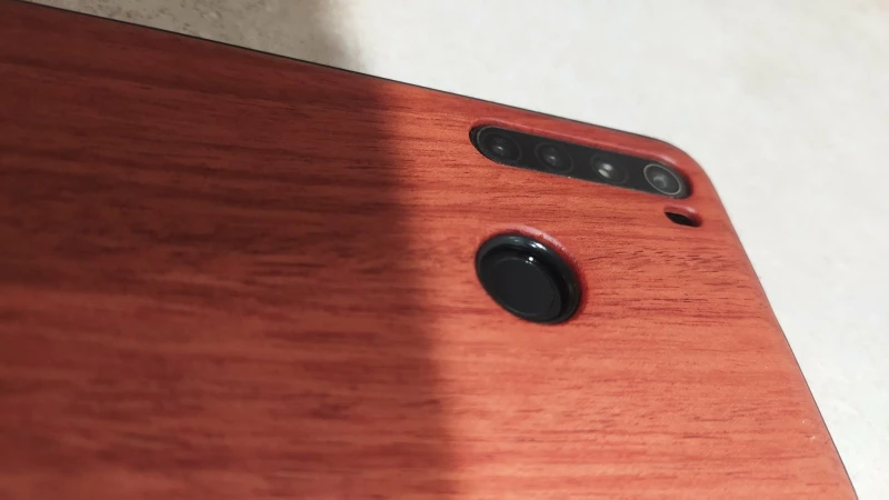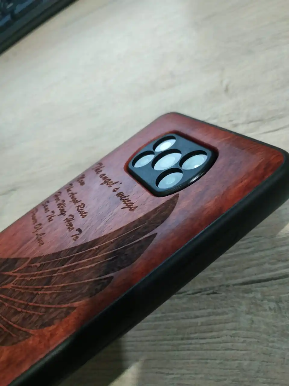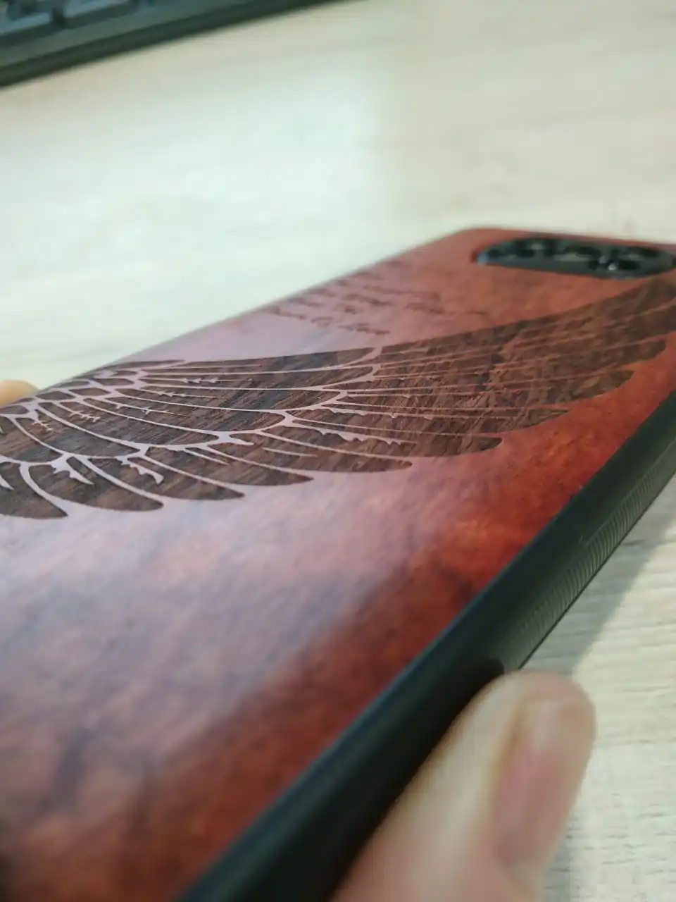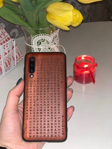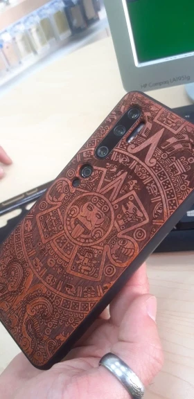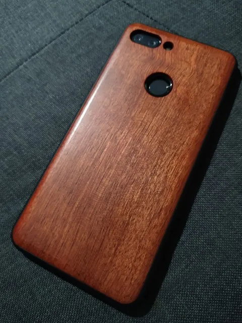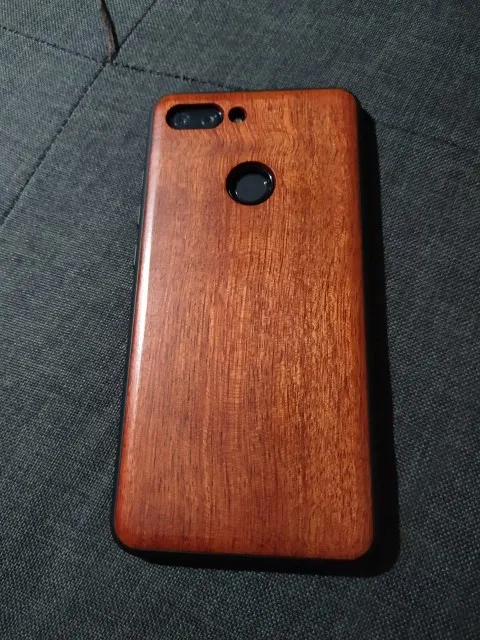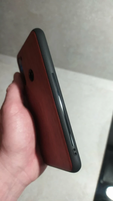 Очень красивый чехол. Тыльная сторона выполнена из дерева, и одно удовольствие проводить пальцами по его рифленному узору. Чехол внутри и по бокам выполнен из силикона. Кнопки в чехле нажимаются мягко, очень комфортная степень нажатия (сравниваю с силик.бампером от нилкин - там очень все туго нажималось). Камера в чехле защищена: есть зазор в 1,5 мм. В этом чехле есть только один минус - бортики не высокие, находятся в ровень экрана телефона и не заезжают на него. Если есть защитное стекло , то оно выпирает на 1мм выше от чехла. В чехле телефон выглядит тонким и аккуратным. Сам чехол немного скользкий, по бокам есть небольшие полоски для лучшей фиксации в руке. Ещё могу сказать, что если сравнивать с чехлом нилкин, то этот чехол ощущается намного легче, но в нилкин зато бортики выше и заезжают на экран. Покупкой все-равно довольна, чехол необычный, красивый , вызывает вау-эффект.