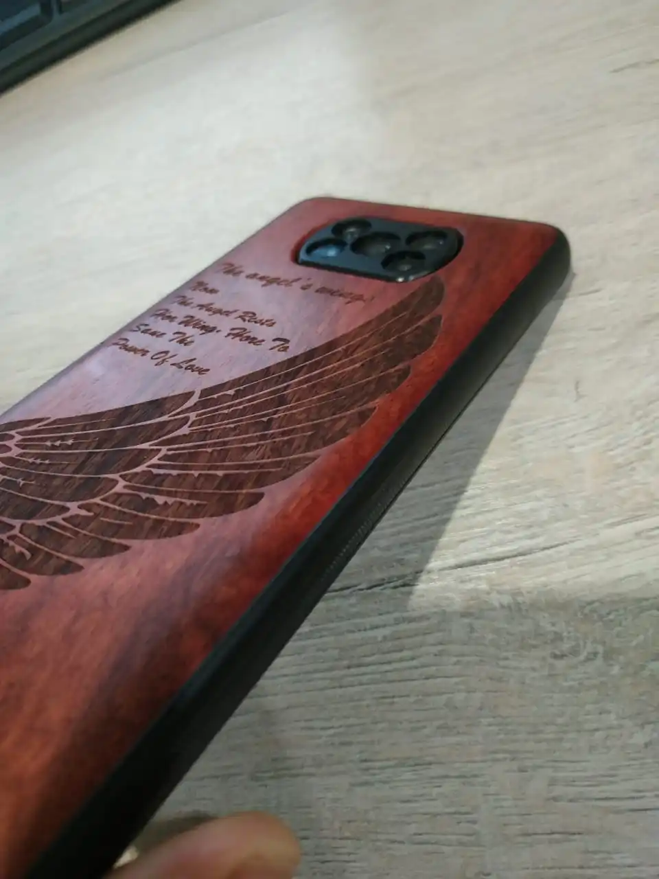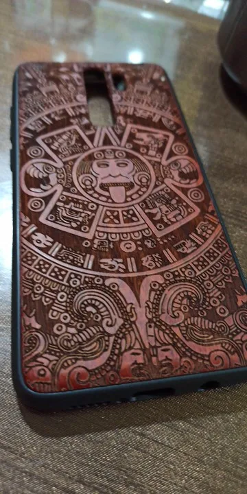 Доставка товара чуть больше двух недель, товар качественный , боковая часть скользковата из резины,а задняя часть из дерева ,выполнено очень качественно лазером я думаю. Экран защищает но если он стеклом, то стекло чуть чуть выпирает , камера защищена, отпечаток сзади утоплен даже сильнее чем хотелось бы. Но чехол просто обалденный. Товар и продавца рекомендую.