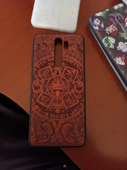 Отличный чехол. Не дерево, конечно, но узор рельефный, объёмный, сделан очень качественно, с множеством мелких деталей. Огрехов не заметил. 2 недели шёл, доставили в постамат.
