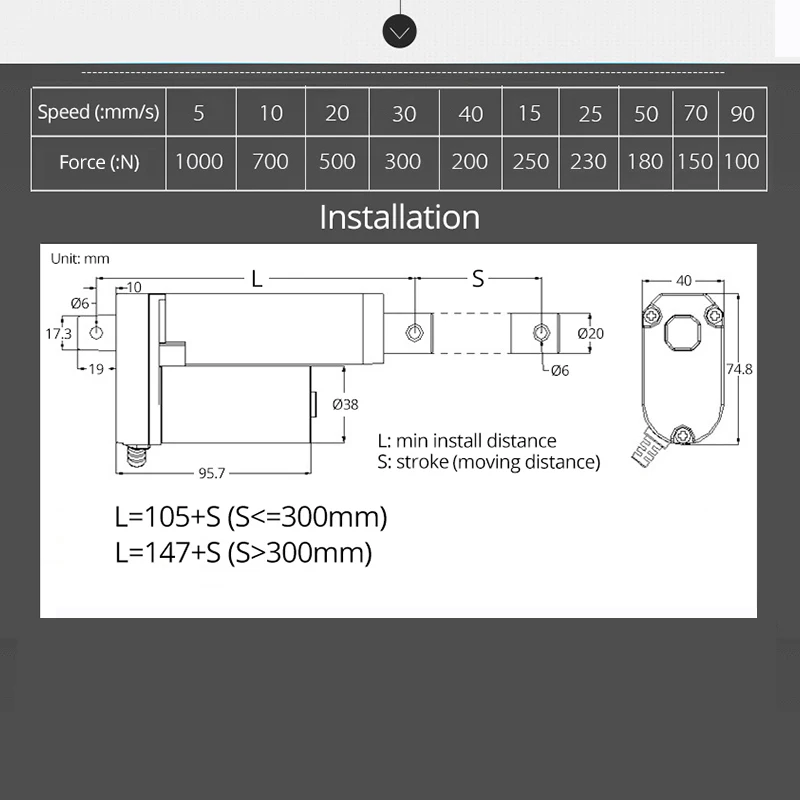 Электродвигатель, 24 В, металлический, линейный, Ход 50100150200250 мм