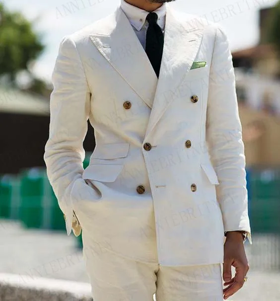 Летний Пляжный мужской костюм с брюками ANNIEBRITNEY, льняные свадебные костюмы для мужчин, повседневный вечерний смокинг, Блейзер, индивидуальный мужской костюм
