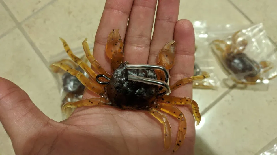 Будет интересно понизить его На небольшом рифе от лодки. Эта приманка понравится всем! Большинство цехов, которые я ловлю, выплюнуть несколько маленьких крабов, как только они находятся на лодке, так что это должно работать. Крючки будут держать до Большой Комод точно!