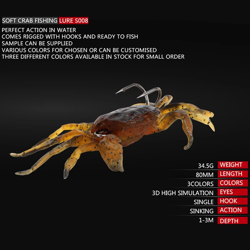 Bassdash 5 шт.лот искусственные рыболовные приманки, наживка-краб, 3D имитация, Мягкая приманка для рыбы с острыми крючками, 8 см, 35 г