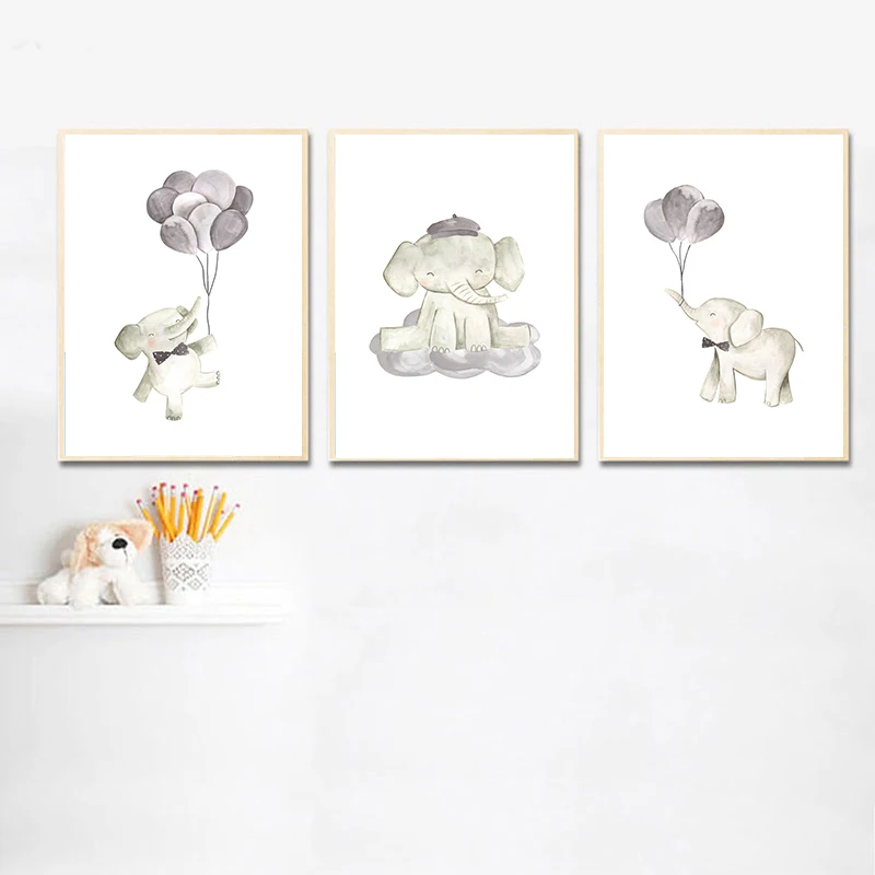 Детская Настенная картина для детской комнаты, Постер со слоном и в...