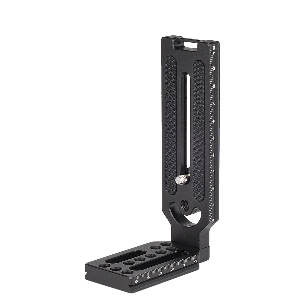 1. Изготовлен из авиационного алюминия, обеспечивает устойчивость к потертостям и коррозии. 2. Стандартный винт 1/4-20, подходит для большинства штативов, моноподов и т. д. 3. Решить проблему вертикальной съемки с цифровой DSLR камерой на штативе или gimbals стабилизатор 4. Легкий и портативный, можно использовать вместе с штативом или просто рукой.