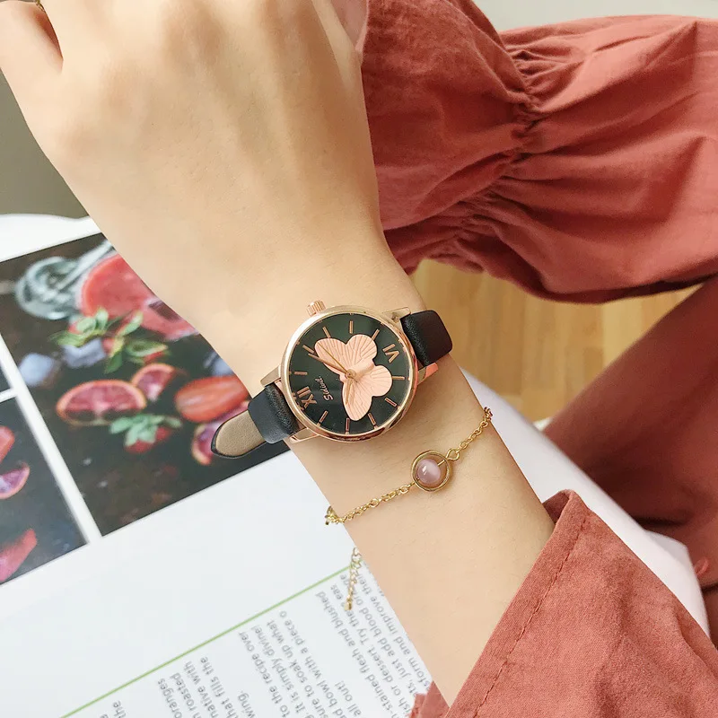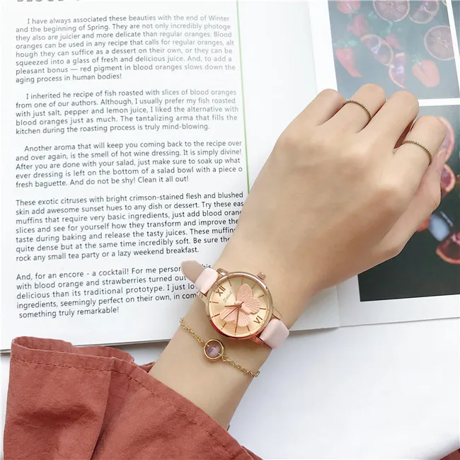 Женские кварцевые часы, модные повседневные наручные часы с рисунком бабочки, брендовые креативные часы Ulzzang, подарочные часы