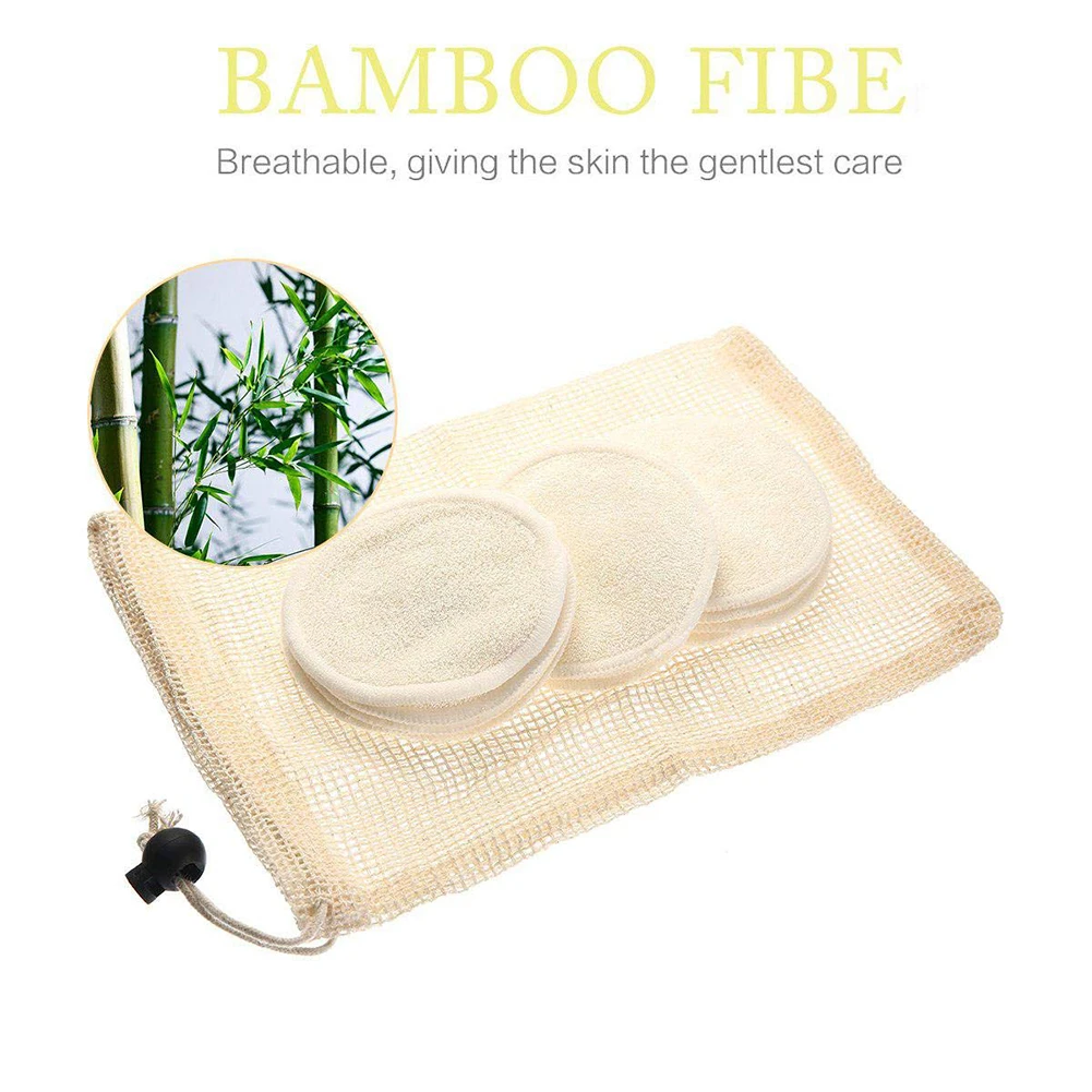 12 шт.компл. многоразовая моющаяся круглая бамбуковая хлопчатобумажная ткань для макияжа лица бриллиантовые подушечки с сетчатым мешком для чистки ухода за кожей лица