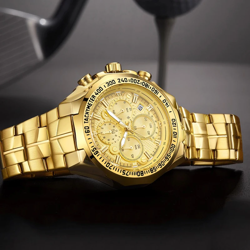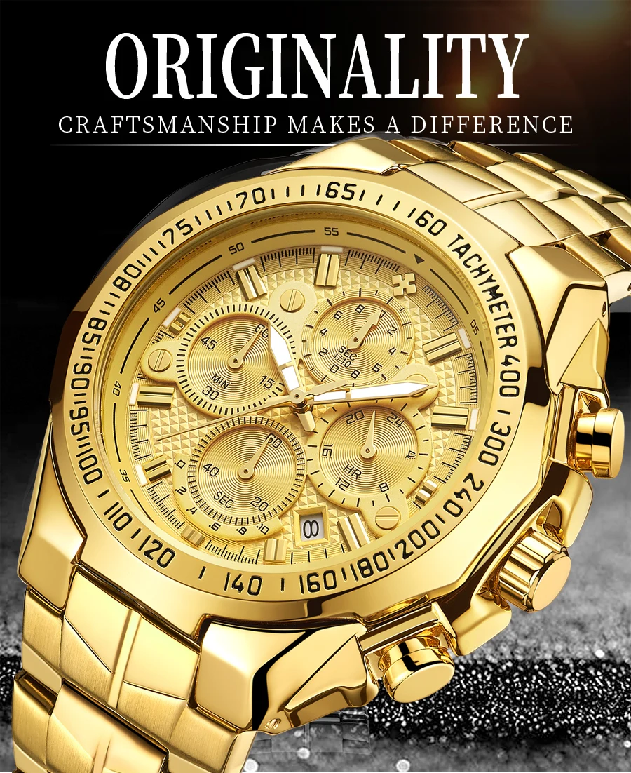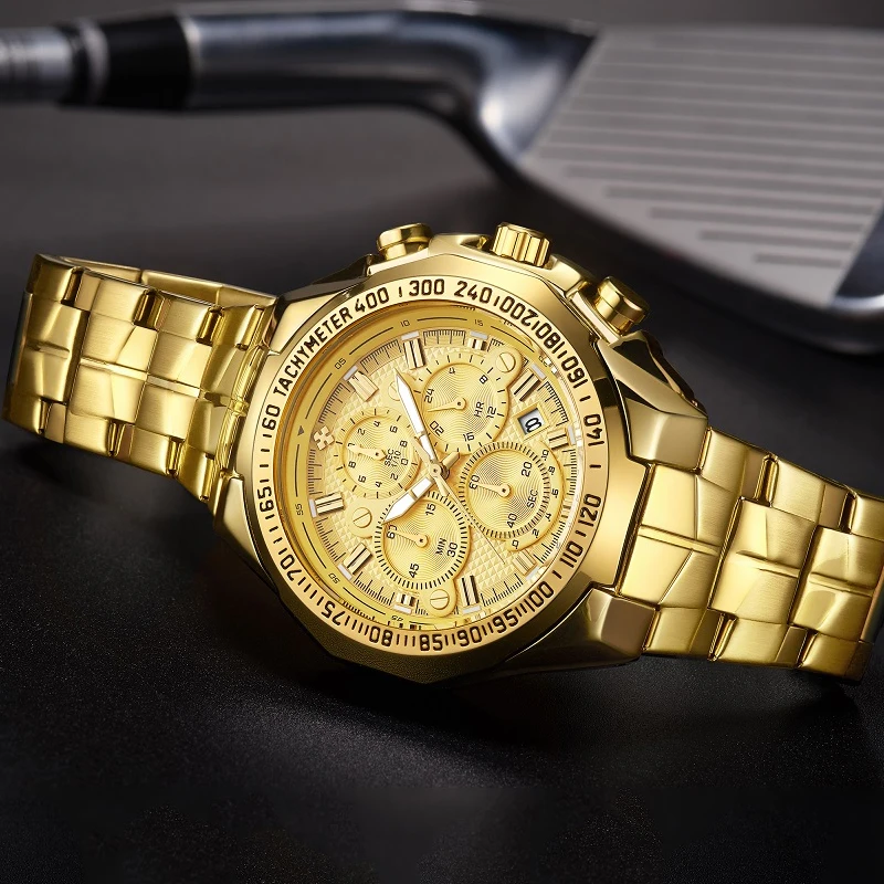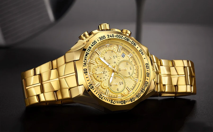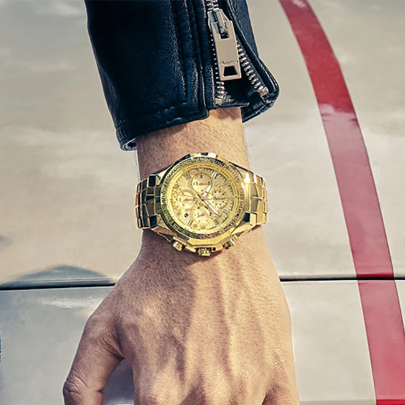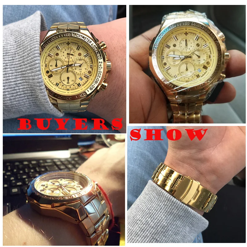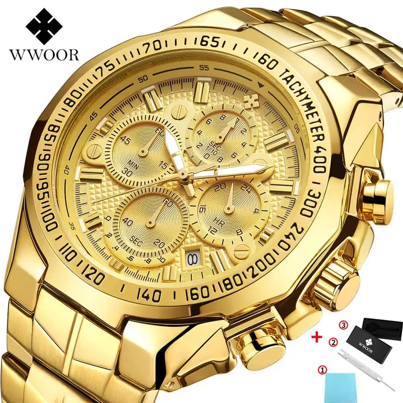 Часы WWOOR мужские наручные кварцевые с большим циферблатом, спортивные водонепроницаемые, золотистые, с хронографом, 2021