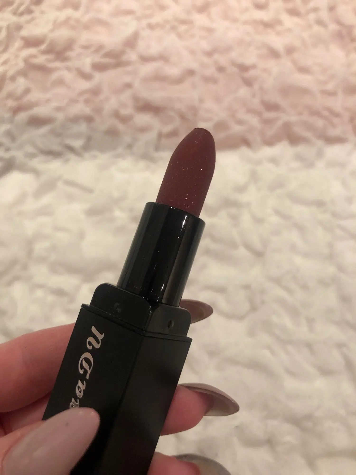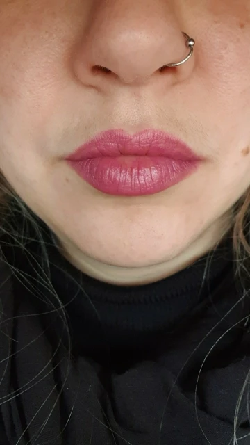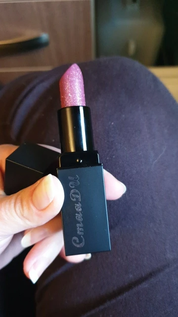 Отличная помада. Блестки мелкие, на губах почти не заметно. Но это не минус, а скорее плюс. Стойкая, не растекается. Продавцу спасибо.