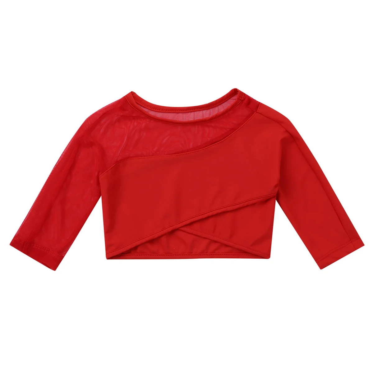 Особенности: Кроп-топ выполнен из полиэстера, спандекс и сетка материала, ручная стирка. Таблица размеров означает возрастные диапазоны для девочек, но они предназначены только для общего руководства. Особенности: рукава 3/4, ассиметричный вырез и рукав из сетки и соответствующий ассиметричный низ подола. Утягивающая застежка. Эластичная ткань, дышащая, мягкая и удобная в носке. Модные топы для вашей девочки. Идеально подходит для занятий балетом, танцами, выступлений на сцене, тренировок и т. Д.