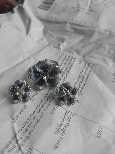 посылка дошла за 2 месяца. за такие деньги супер ! отличный комплект на лето, яркий и нарядный. размер кольца примерно соответствует. мне кажется, немного больше в реальности. вообщем. продавца рекомендую. колечко и сережки- тоже.