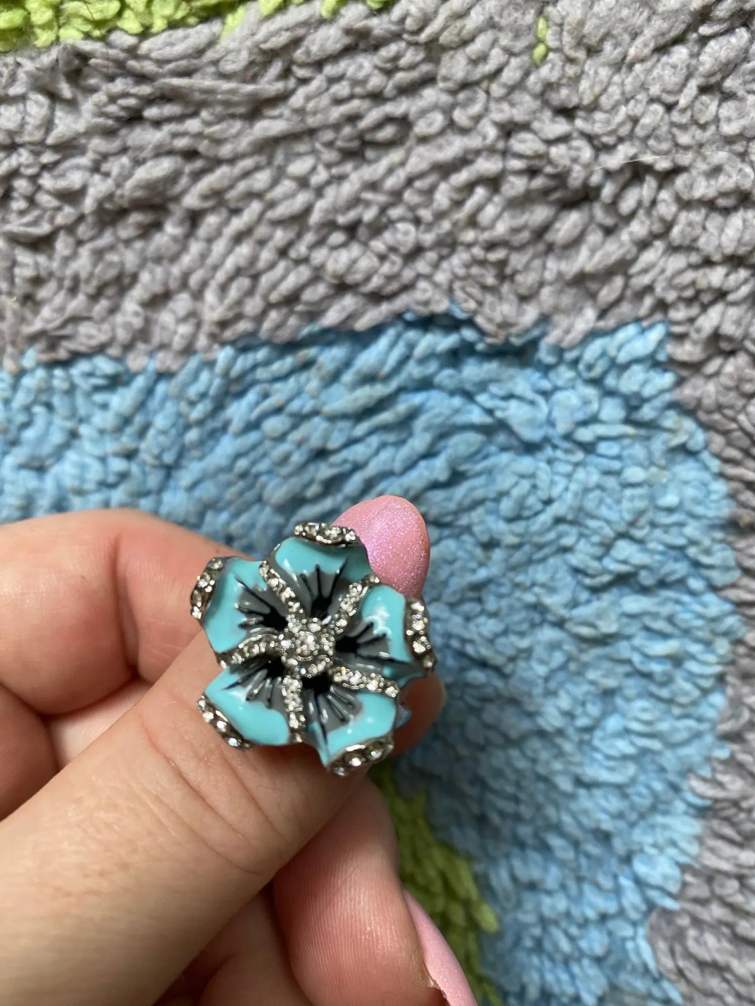 Красивое крупное кольцо,очень понравилось!Взяла на подарок подруге!Яркий цвет,много стразиков!Размер 9-немног великоват,Взяла бы 8.5 .Полностью соответствует заявленному фото.Однозначно советую к покупке,5 звёзд!Спасибо!!!!!