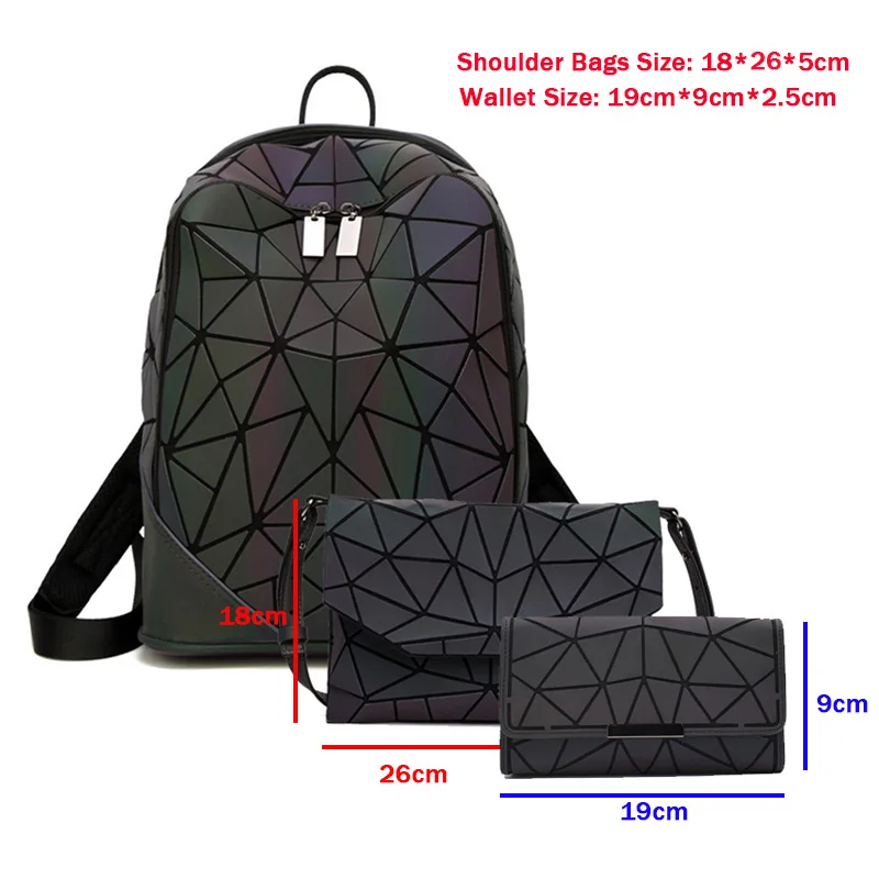 Набор из 3 предметов для женщин, светящийся голографический рюкзак, школьные ранцы для конвертов, сумка на плечо рюкзак для девочки подростка