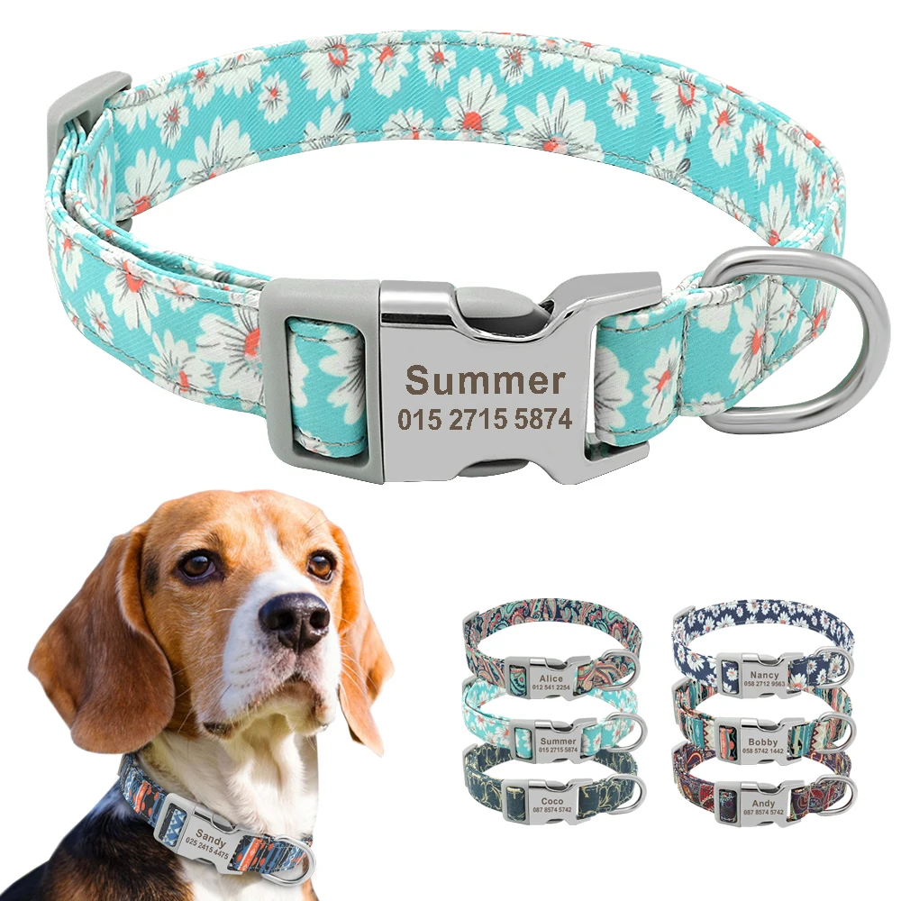 Персонализированный ошейник для собак, нейлоновый ошейник с гравировкой для щенков, индивидуальная идентификационная бирка для собак малого и среднего размера, Бигль, товары для домашних животных