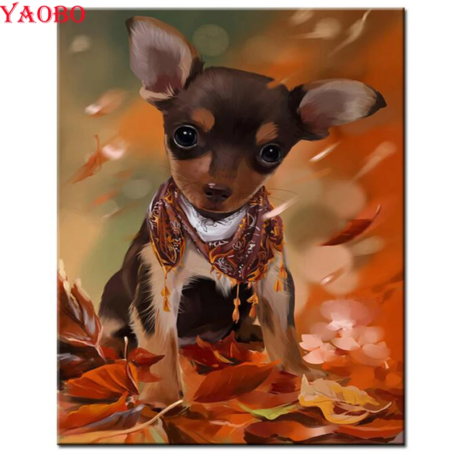 DIY Алмазная мозаика вышивка крестиком собака породы чихуахуа картина из страз полная квадратная вышивка бисером, животное мозаика ручной работы подарок