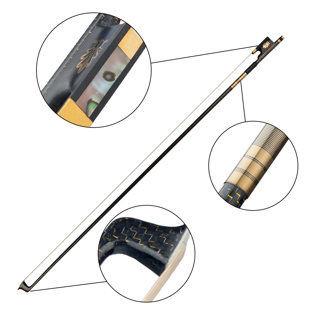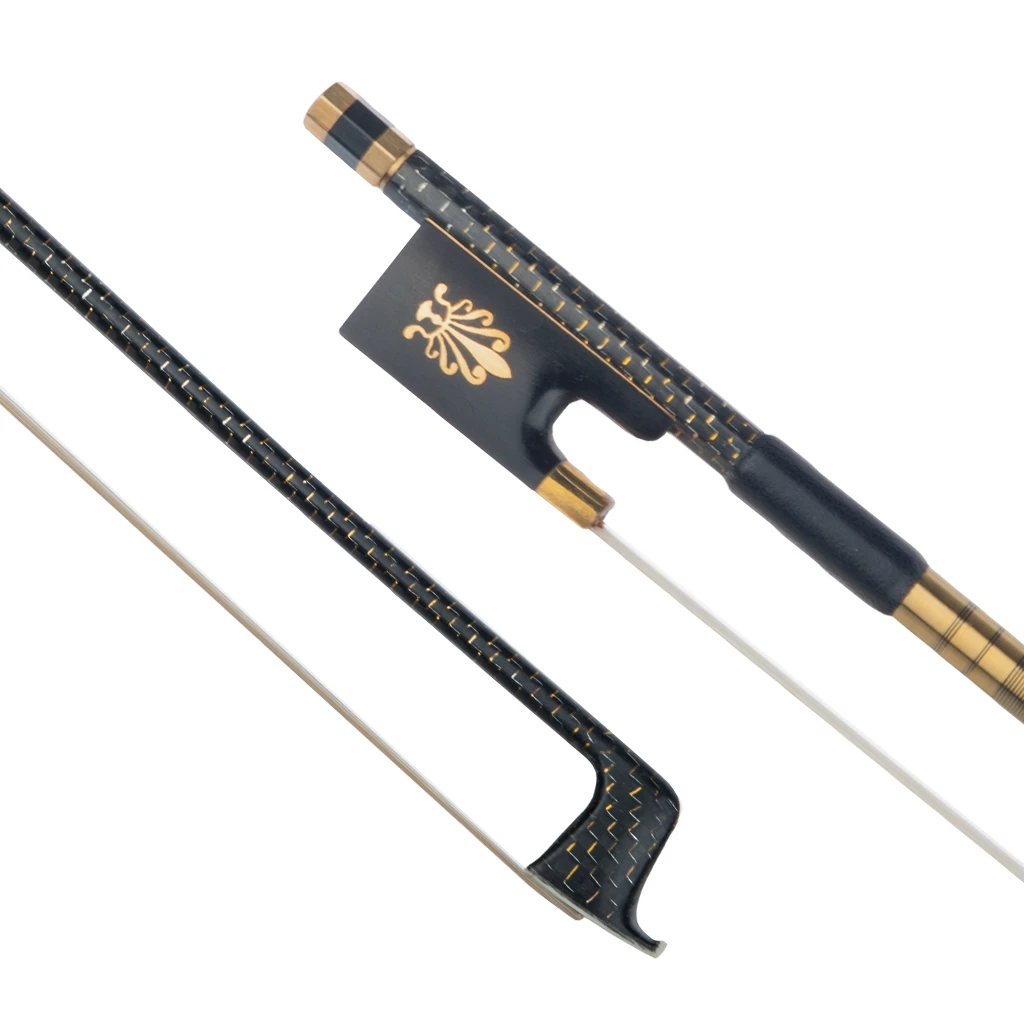 Профессиональный 44 скрипкаСкрипка Лук золотой и серебряный Шелковый плетеный бант из углеродного волокна белый конский волос эбеновая лягушка быстрая реакция