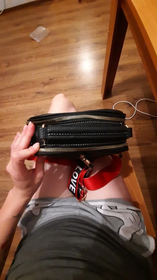 Сумочка очень милая! пришла с ремешком, фурнитура рабочая. Пакет с воздухом в сумочке присутствовал ,,,,но без воздуха сумочка немного помялась, но не критично . Маленькая ,,но как для сумочки такого размера, очень вместительная и много отделений . Прошита ровно , кожзам приличный, запаха нет. Пришла за несколько недель ! Все ок ! спасибо !