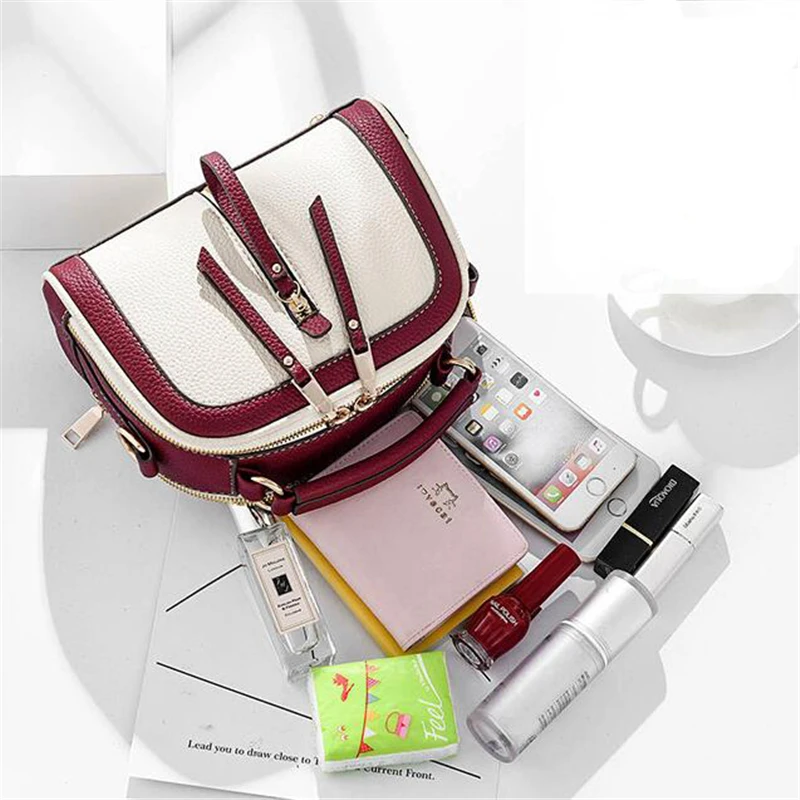 Хит продаж, маленькая контрастная цветная сумка с верхней ручкой, женские сумки через плечо, кошелек для телефона, модные сумки на одно плечо с молнией из искусственной кожи