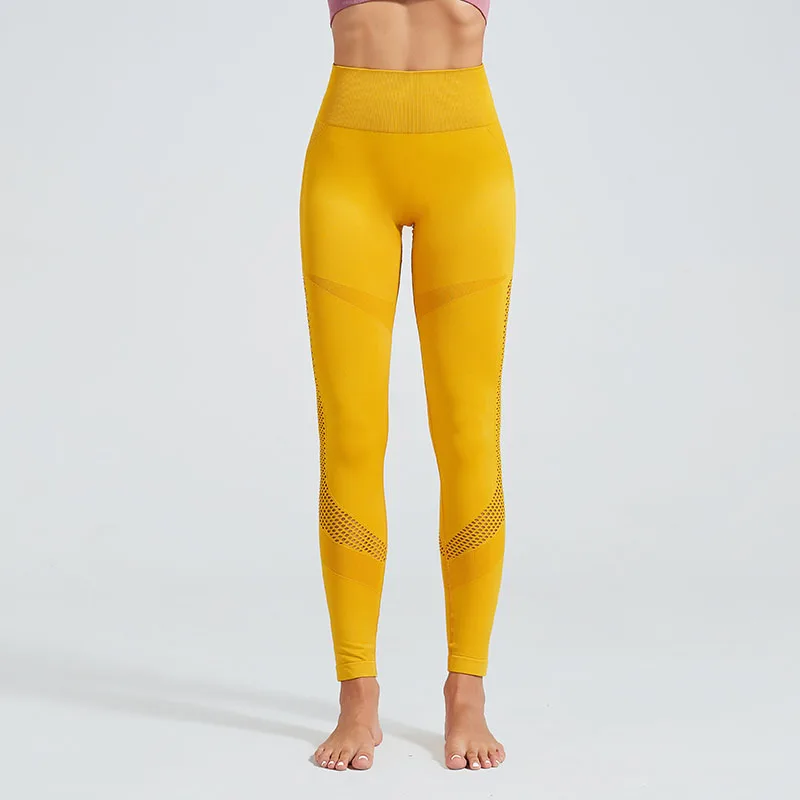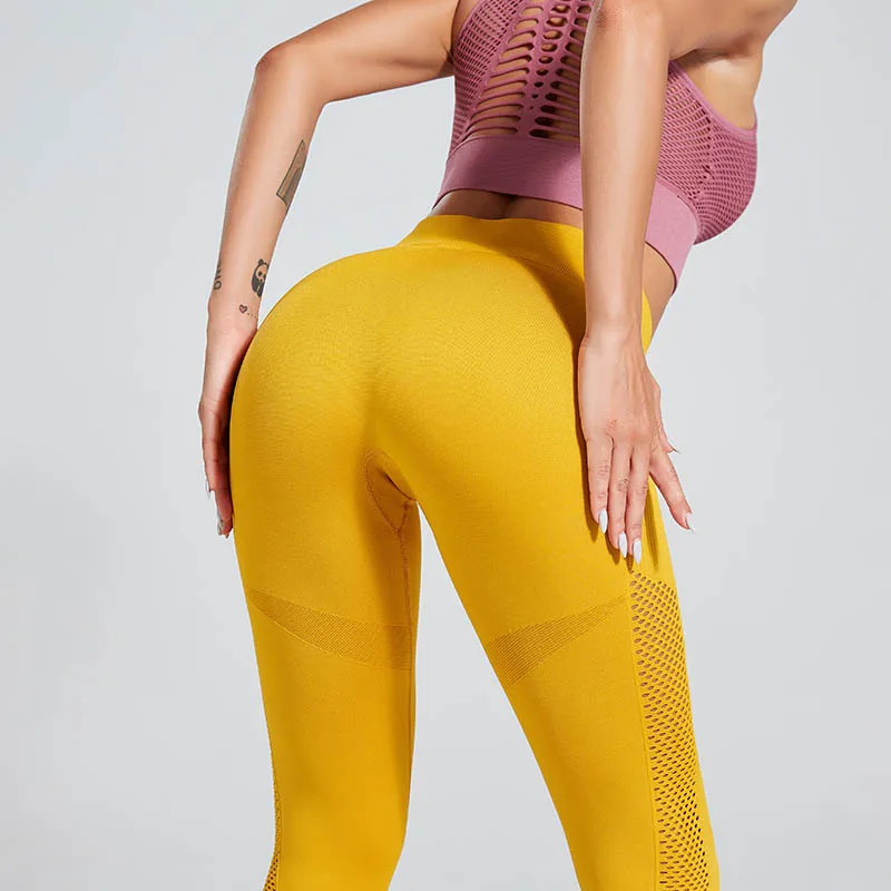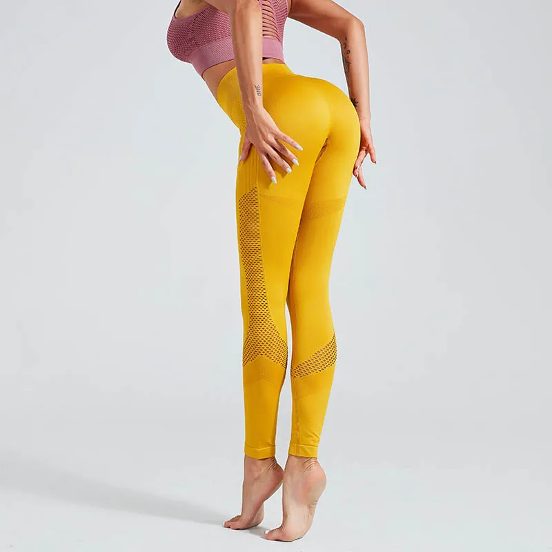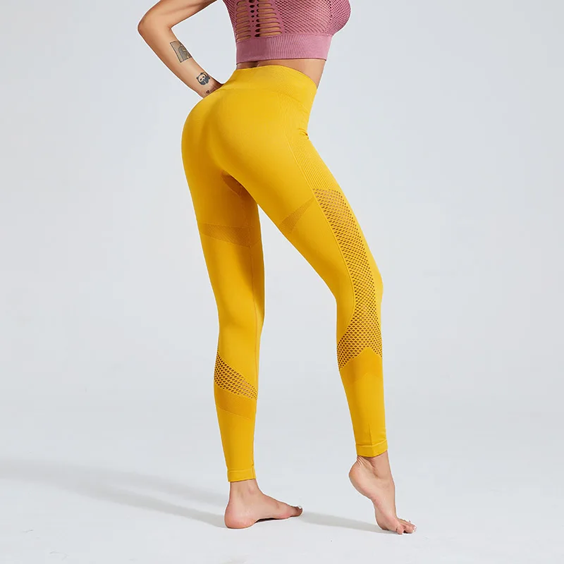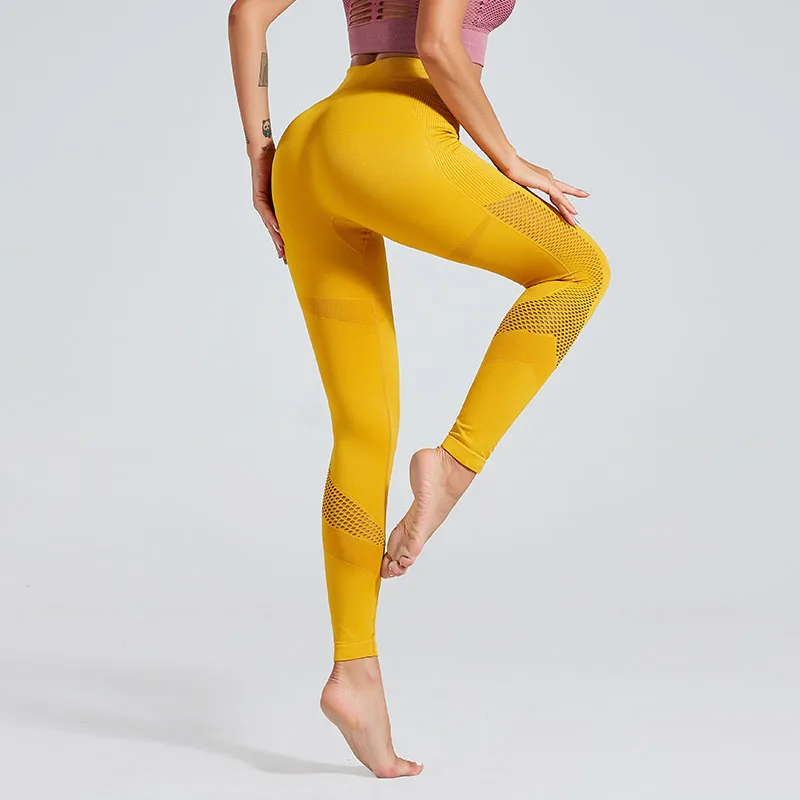 Женские леггинсы из спандекса, однотонные бесшовные джеггинсы для фитнеса, трикотажные облегающие леггинсы из сетчатого материала, одежда для фитнеса, 15%