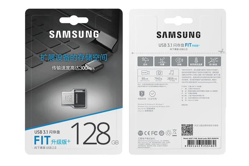 Флешка SAMSUNG USB 3,1, 32 ГБ, 64 ГБ, FIT Plus, оригинальный флеш-диск 128 ГБ, 256 ГБ, макс. 300 МБс., флеш-накопитель