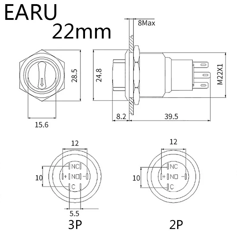 22 мм самовозвращающаяся мгновенная самоблокирующаяся фиксирующаяся Водонепроницаемая металлическая осветительная лампа DPDT 23 положение со светодиодом