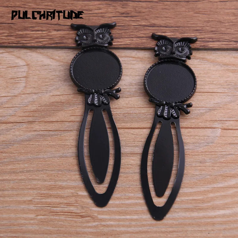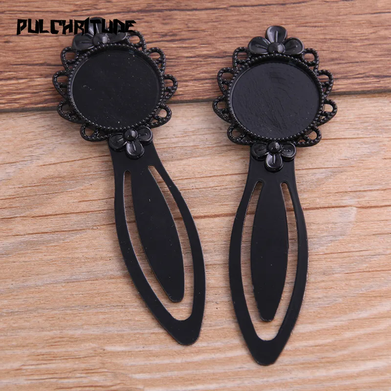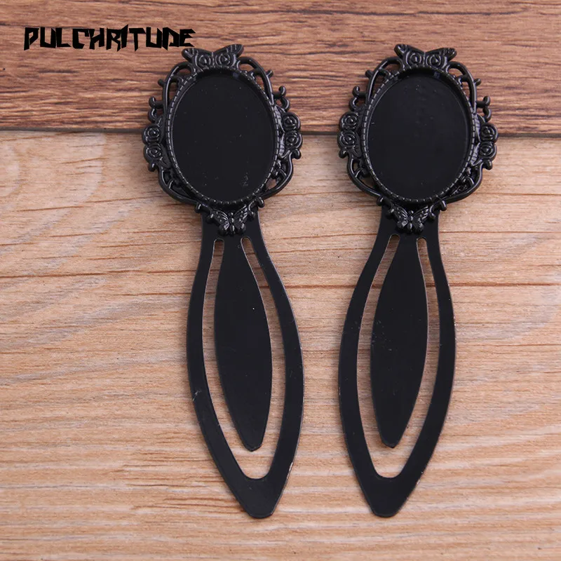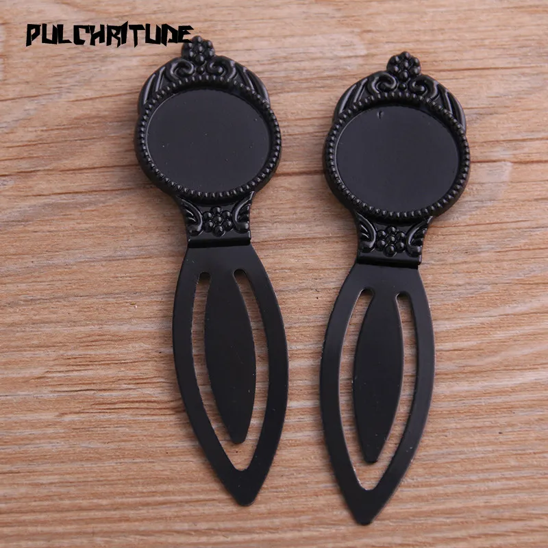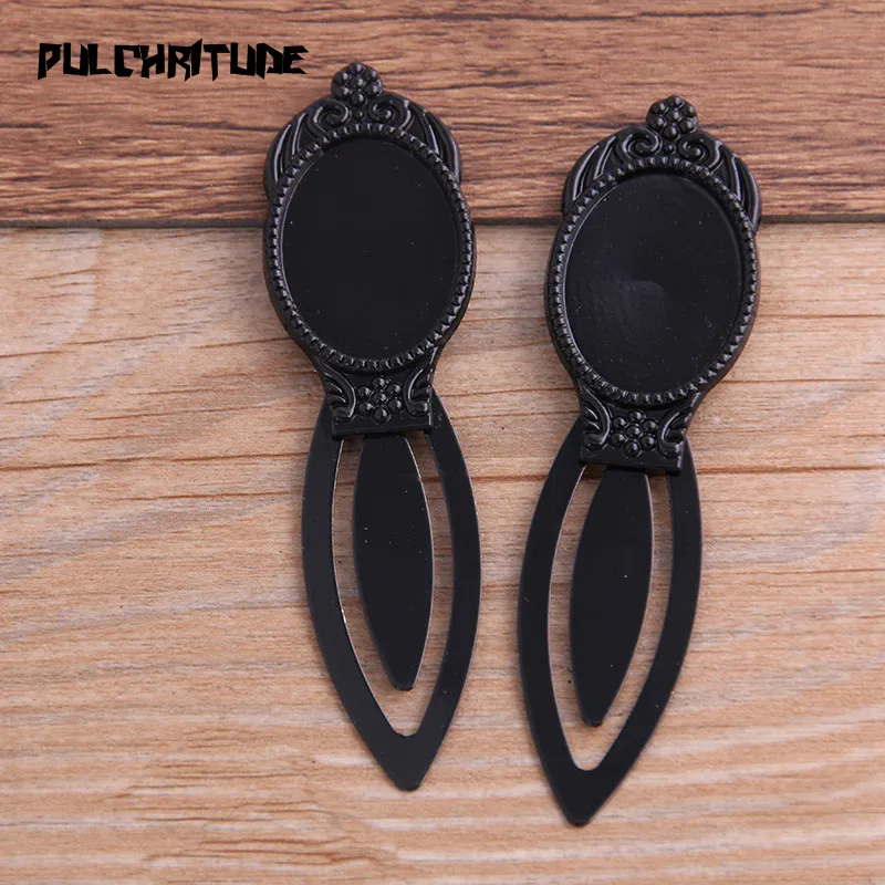 Винтажная круглая овальная Закладка ручной работы с кабошоном черного цвета, основа для камеры, 2 шт.лот