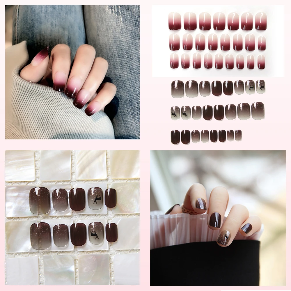 24 шт новые красные винные градиентные цветные длинные накладные ногти модные популярные накладные ногти для девушек и девушек с клеевыми наклейками