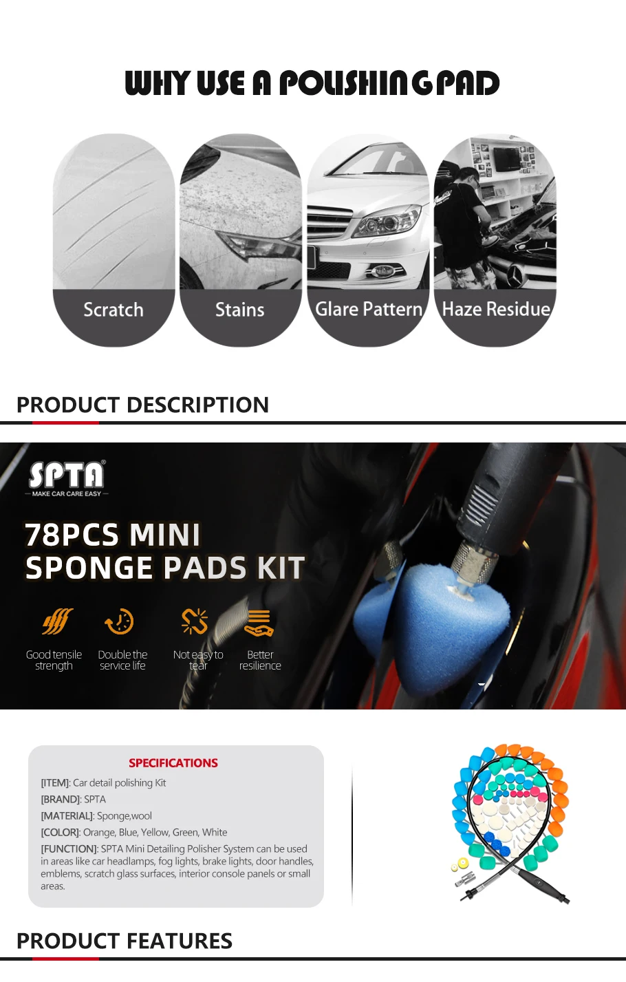 (Оптовые продажи, 3 комплекта и 15 комплектов) Мини полировальная машина SPTA, инструменты для удлинения салона автомобиля, набор для полировки роторного полировального станка