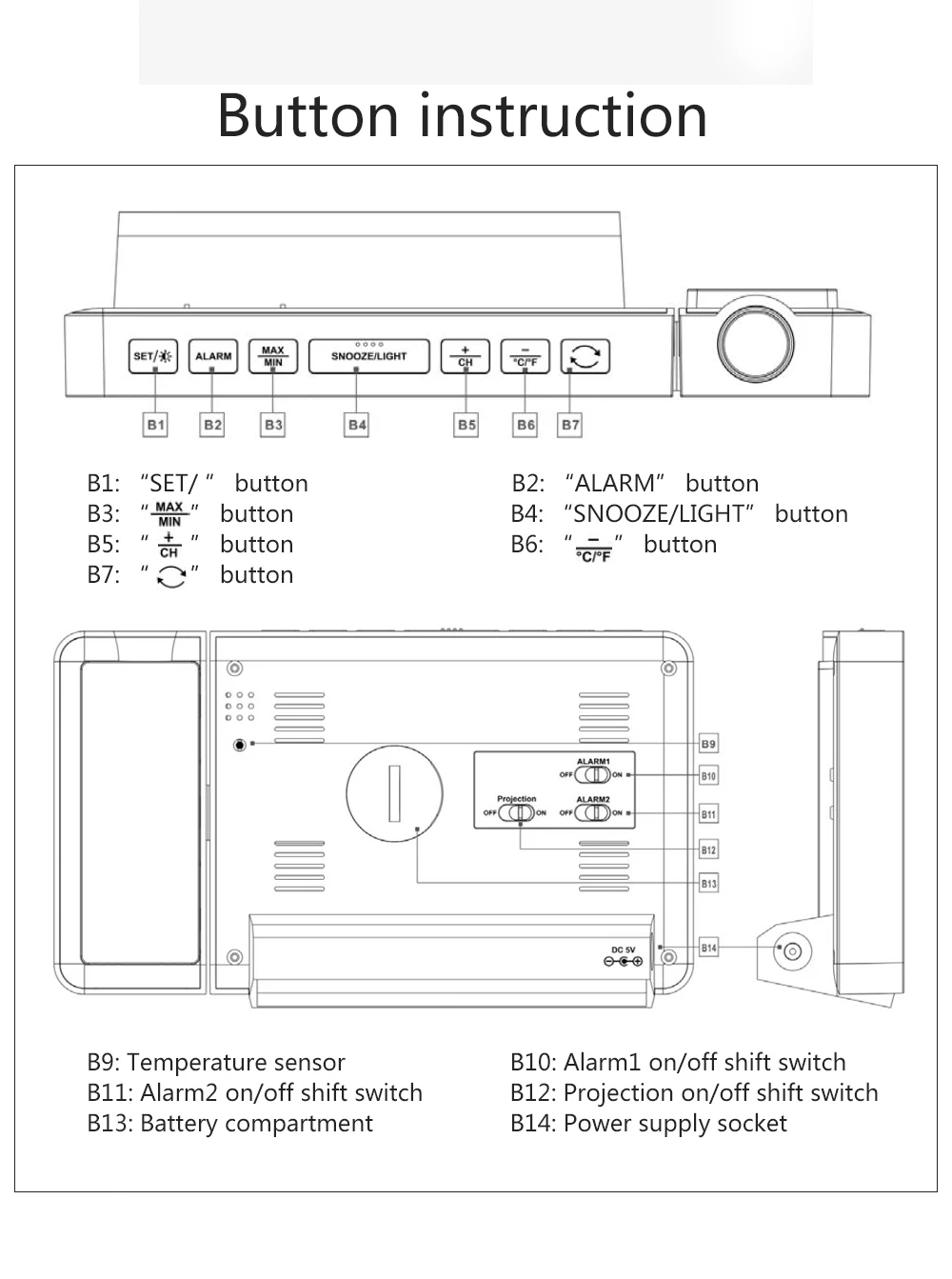 Цифровая метеостанция с будильником и функцией повтора проекции вре...