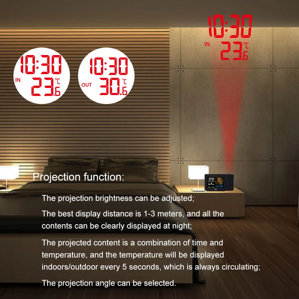 Беспроводная метеостанция с проекцией, настенный цифровой будильник...