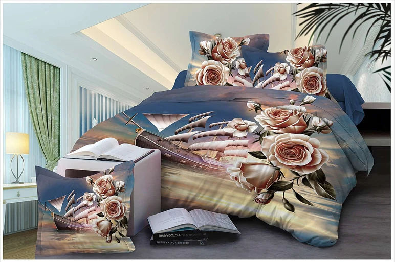 17 горячая Распродажа 2018 Новый 3D набор постельного белья с Три-дэ принтом; Цветочный узор; Стёганое одеяло, покрывало на кровать, простынь, наволочка чехол 4 шт.