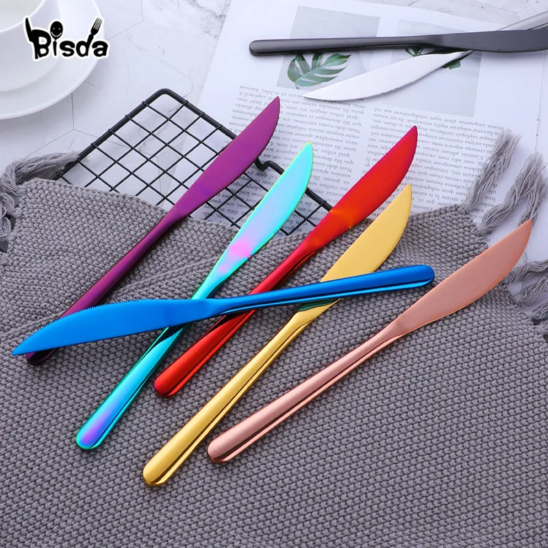 Набор столовых ножей из нержавеющей стали, острый нож для стейка, Западный черный нож, столовый нож для ресторана, золотые ножи в комплекте столовой посуды