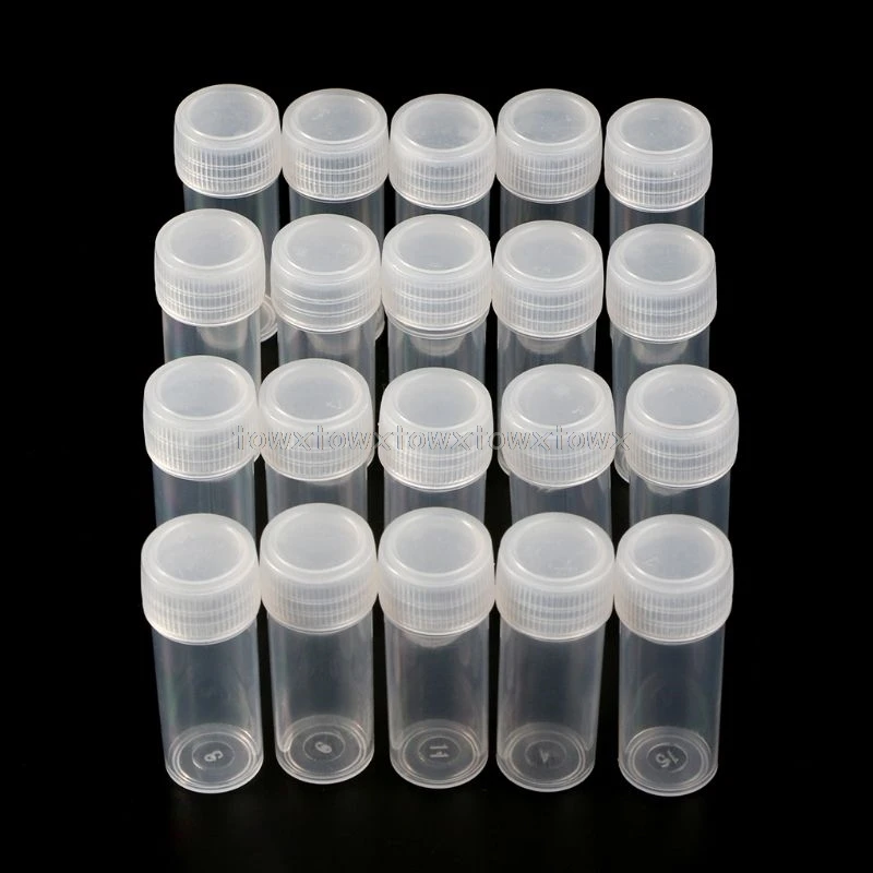Пробирки Пластиковые 5 мл 20 шт., флаконы, контейнер для образцов, ёмкость для порошка, баночки с закручивающейся крышкой, принадлежности для школы и офиса, Jy23 19