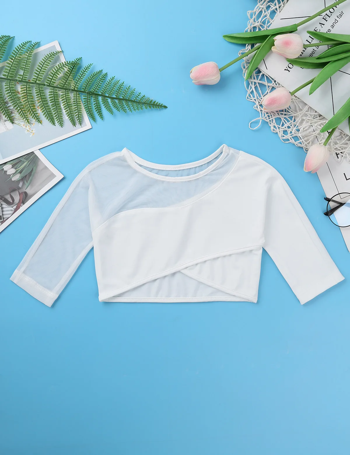 Топ детский ассиметричный для танцев, для девочек, с рукавами 34