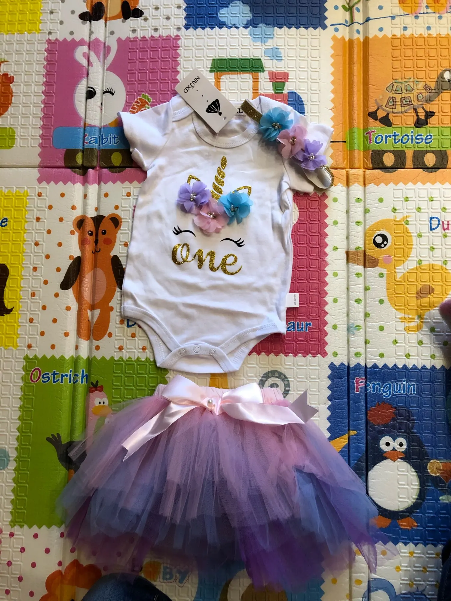 Детское праздвечерние чное платье с единорогом, на 1 год, наряд для девочки на день рождения
