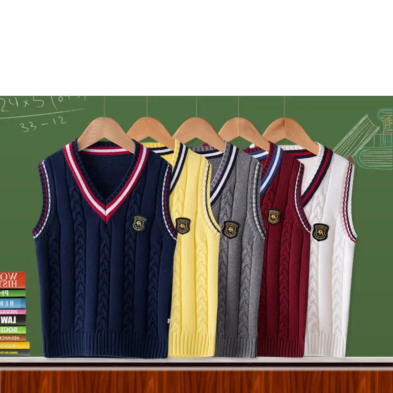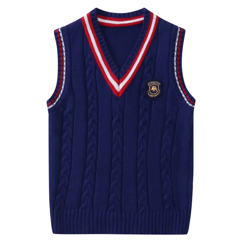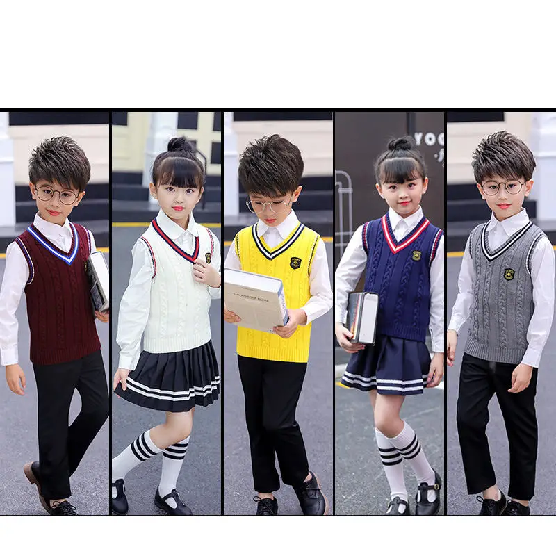 Трикотажный жилет в стиле преппи для мальчиков, осенне-зимние однотонные свитера с V-образным вырезом, детский вязаный жилет, школьная форма без рукавов для девочек