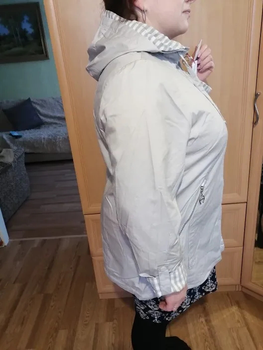 Ветровка высокого качества! Фурнитура, строчки, соответствие размера данным в таблице все заслуживает только хорошего отзыва. Моя ветровка (50разм) отлично села на ог 102, об 115, рост 168. заявленный бежевый цвет оказался теплым серым, ну как на фото у продавца. Такой быстрой доставки - 10 дней! у меня еще не было, и это очень приятный момент. Thanks!