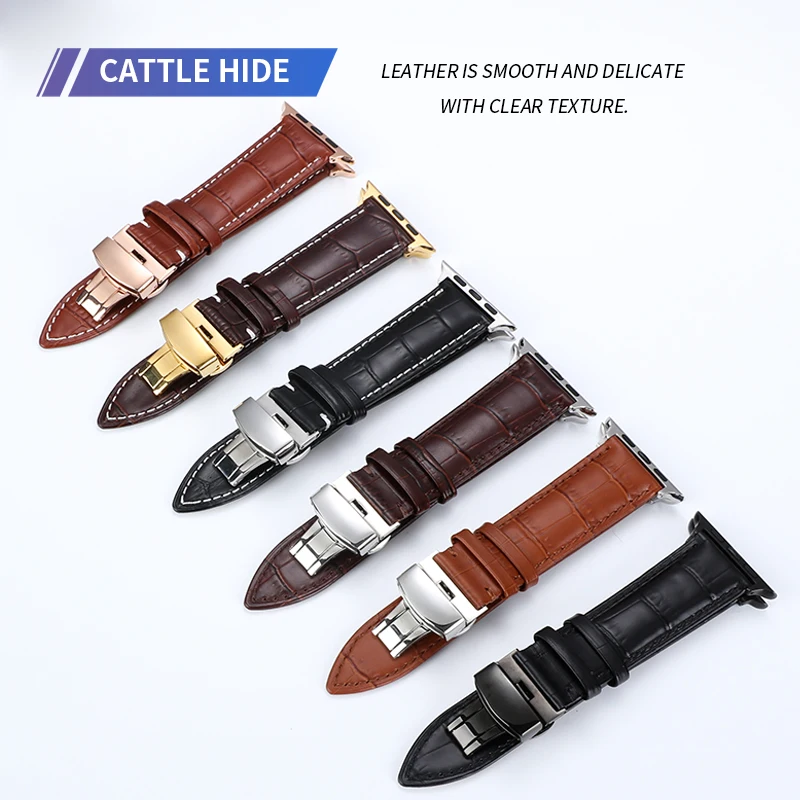 Ремешок для Apple Watch 123 Series 38 мм 42 мм, спортивный кожаный браслет с пряжкой с язычком для Apple Watch 4 Series 40 мм 44 мм