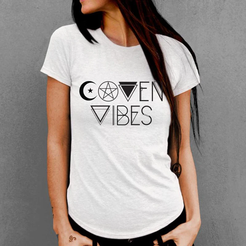 Футболка с буквенным принтом Coven Vibes, забавная Фестивальная футболка на Хеллоуин, женская футболка ведьмы, волшебные рубашки для девочек, хлопковые уличные топы, Прямая поставка