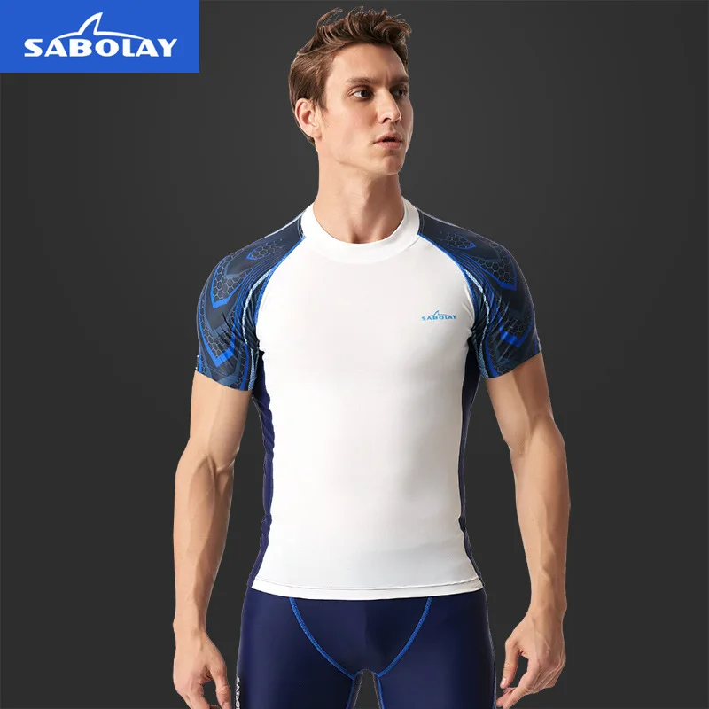 Мужской Рашгард SABOLAY из лайкры, купальный костюм с коротким рукавом, 2021, новый раздельный Рашгард, костюм для дайвинга, Быстросохнущий купальник для серфинга