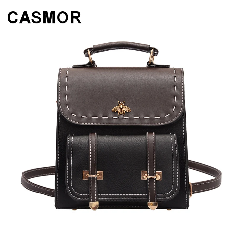 Женский винтажный рюкзак CASMOR, классический школьный рюкзак из искусственной кожи, 2019