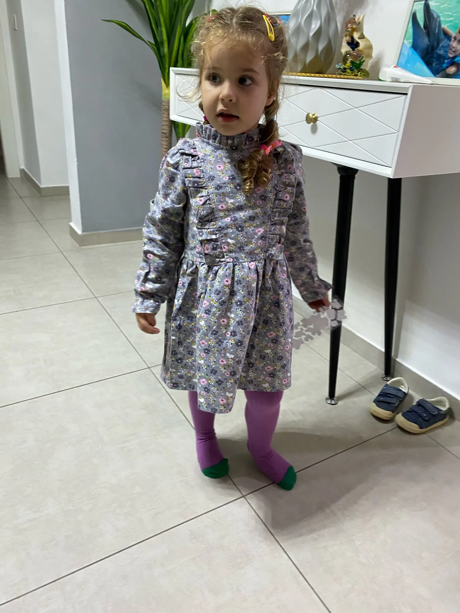 Платье ОБАЛДЕННОЕ!!! Нежная, мягкая фланель. Сзади застегивается на молнию, спереди для декора просто пришиты 3 пуговички. Описание, размерная таблица и фото продавца соответствуют. Брала 2 платья: бордовое - 3Т (длина платья 52 см, рукав 39 см) и серое - 4Т (на вырост; длина платья 60 см, рукав 45 см). Бордовое 3Т идеально подошло дочке 2.6 лет, рост 98, вес 14.5 кг. Прям в самый раз! Будем с удовольствием носить. Девочки, смело покупайте! Качество на высоте, фабричный пошив. Доставка в Польшу около 2 недель.