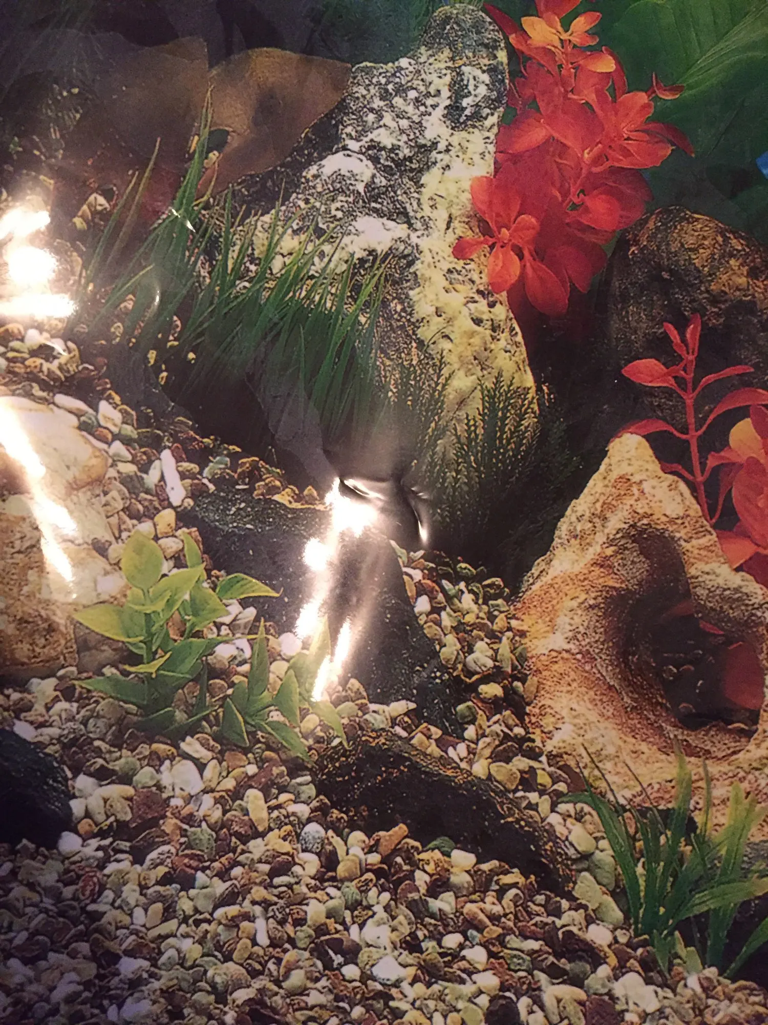 красивая картинка ! так как у меня много растений то практически не видно но это лучше чем ничего ! кстати у него самая дешевая цена ! на мой аквариум 60 литров самое то! длину еще 3 см обрезала