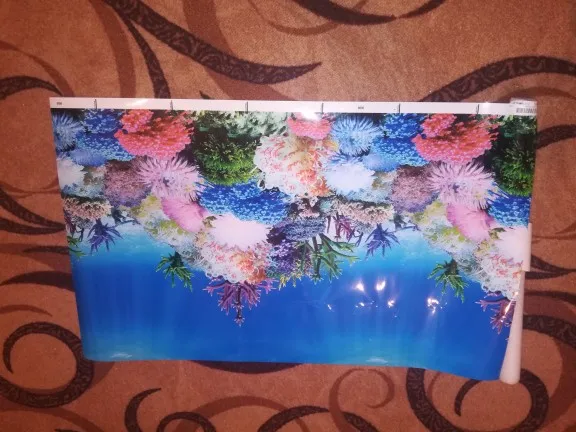 Заказ пришел за 2 недели. Пленка была намотана на валик из пенополистирола, поэтому не помялась при транспортировке, за что продавцу огромное спасибо.. Рисунок яркий, с двух сторон.