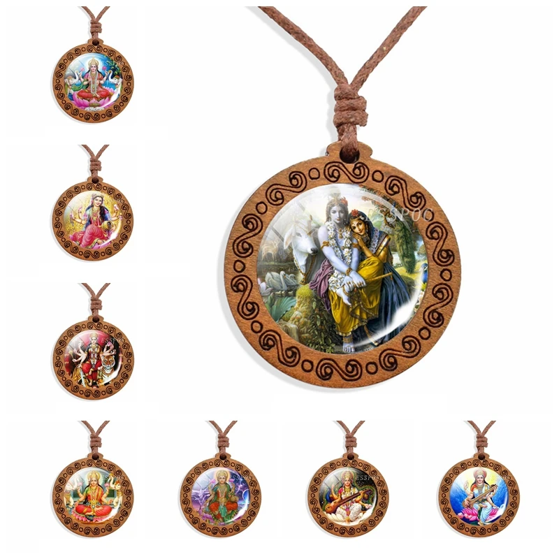 Индийский амулет, подвеска, ожерелье Lakshmi, Shiva, фото Ганеша, кабошон, подвеска, ювелирные изделия, винтажное деревянное ожерелье, подарки для нее