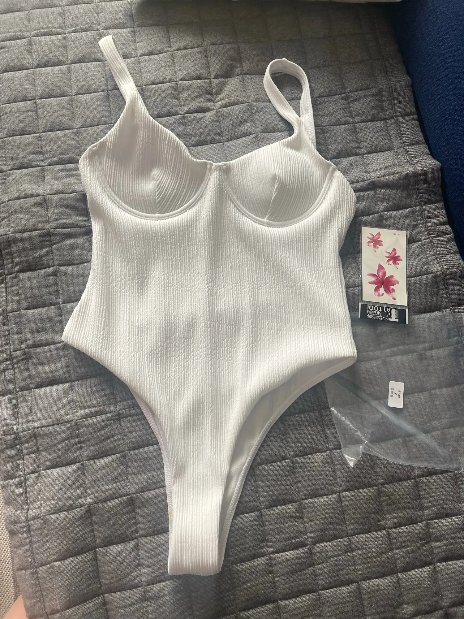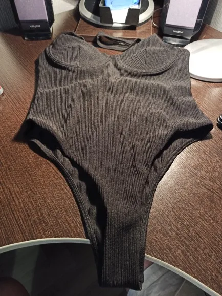 Как будто пожалели ткани на зоне трусов, из-за косточки сбоку выпирает купальник, как будто большой в бюсте. В целом неплохое боди. Не скажу что это купальник. 2 слоя ткани снаружи ребристая ткань, внутри как купальная ткань, но ластовица отсутствует, так что не знаю как носить его без нижнего белья. На попе собирается. Дошёл быстро