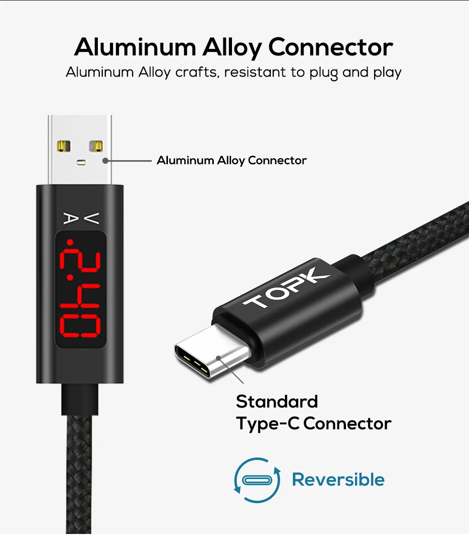 USB-кабель TOPK AC27, Type-C, 3 А (макс.)