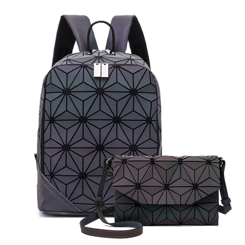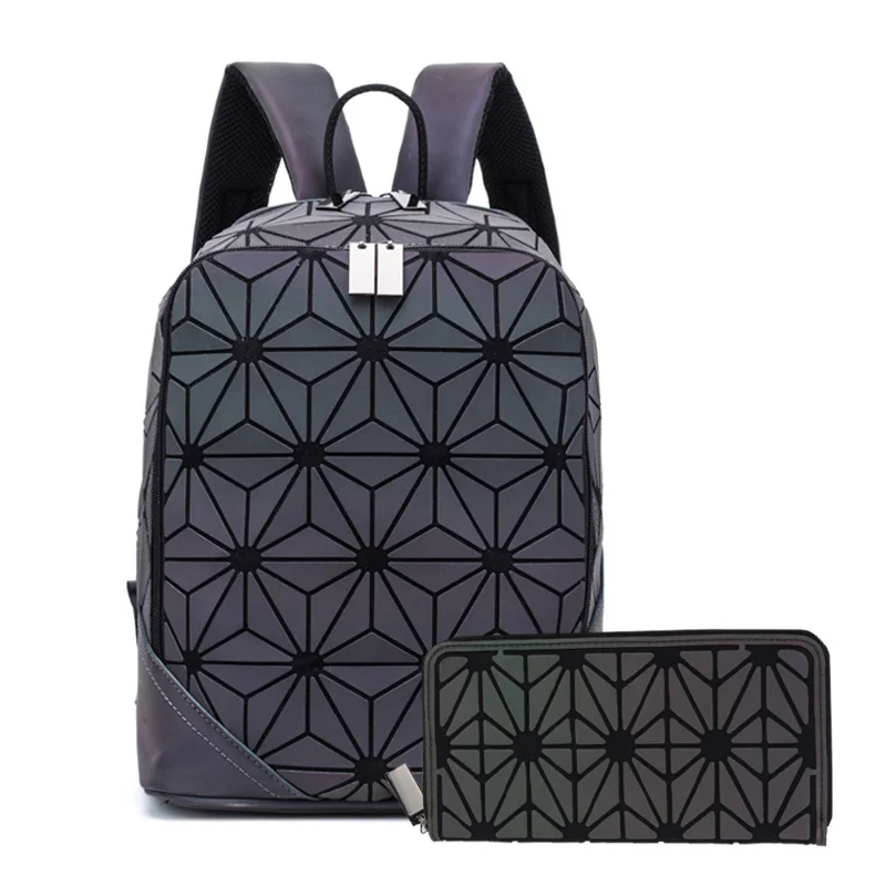 Новый Светящийся рюкзак, женский рюкзак, решетчатый набор, школьные рюкзаки для девочек-подростков, школьные сумки, голографический клатч, кошелек, Mochila