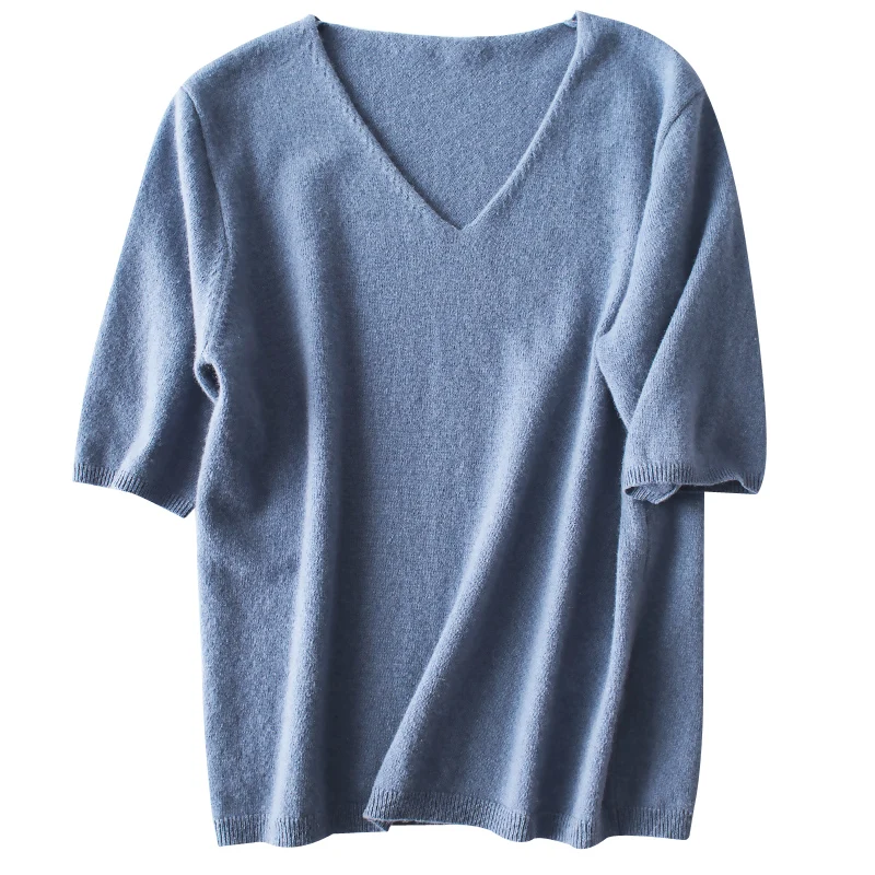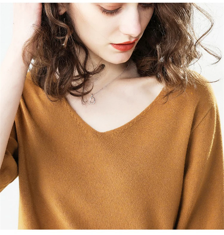 Женский трикотажный пуловер, Однотонный свитер с V-образным вырезом и полурукавом, на осеньзиму, AB005, 2019